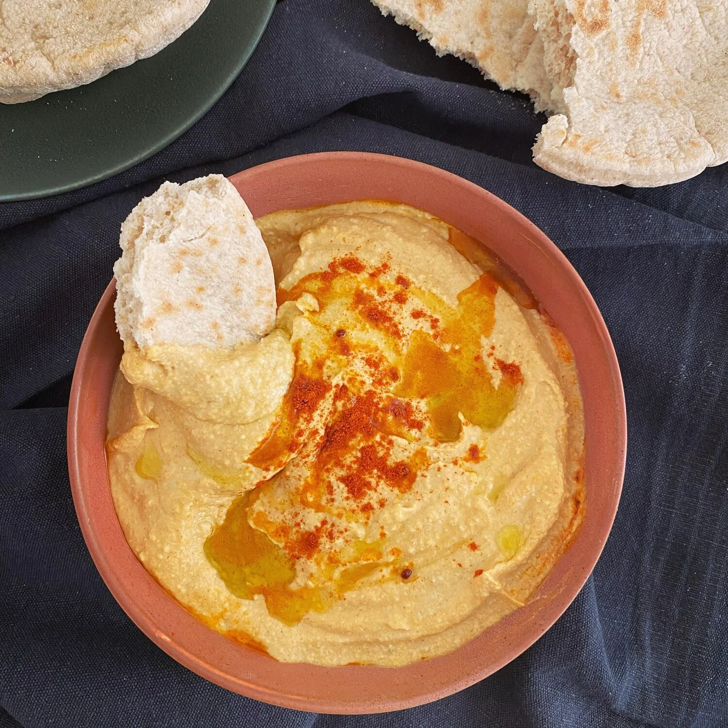 Avec quoi manger le houmous ? La purée de pois chiches présente l’avantage de se manger avec beaucoup de choses : des pains pita évidemment, du pain de campagne, de la baguette, mais aussi avec des crudités comme des bâtonnets de carotte ou de concombre, des tomates cerises ou des radis. Le houmous est également idéal à tartiner sur un bagel pour un brunch par exemple.