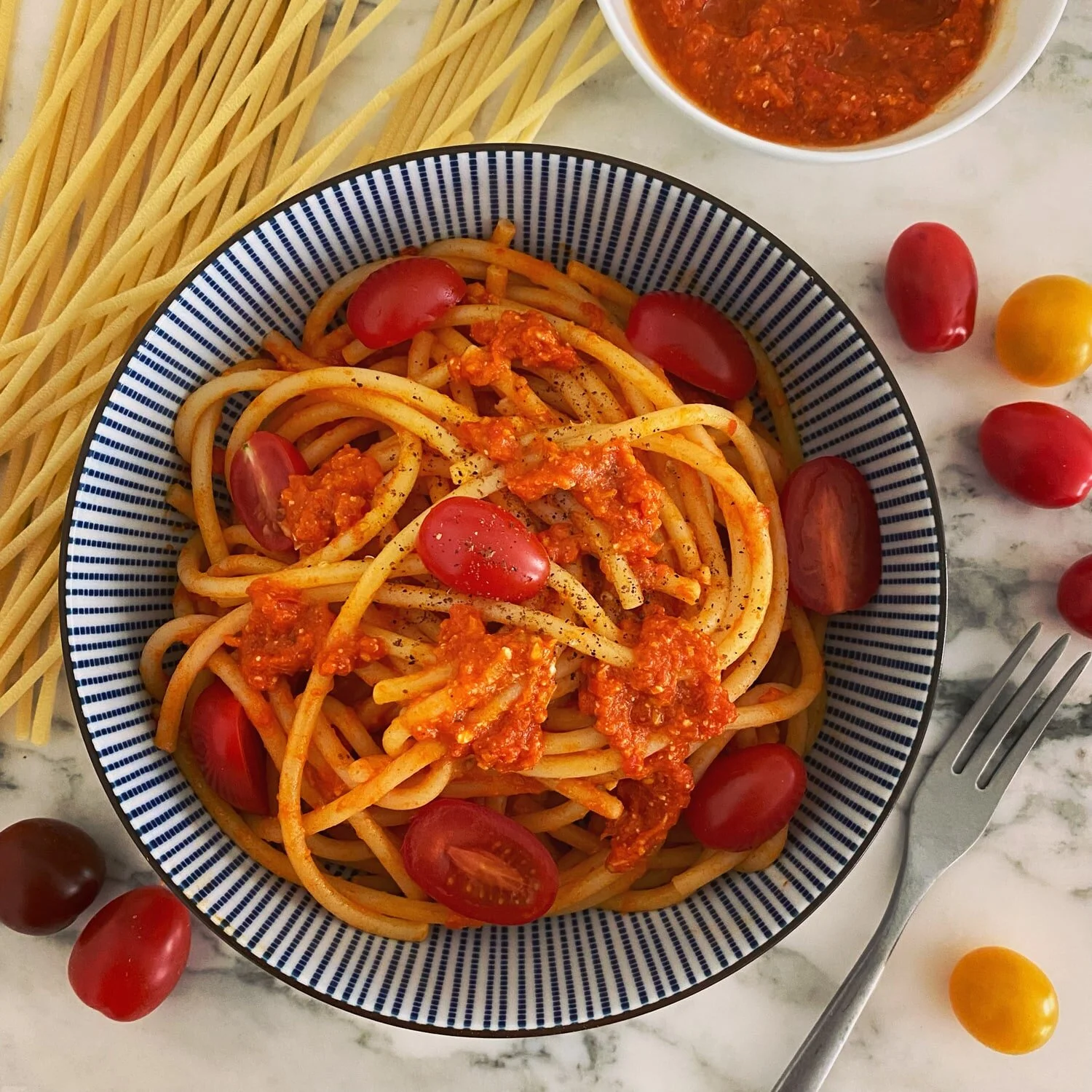 Envie d’un plat de pâtes qui a du caractère ? Envie de titiller vos papilles ? Ce plat de spaghettis à la sauce aux poivrons saura vous réveiller ! Facile à cuisiner car elle ne nécessite pas de faire mijoter la sauce pendant des heures, cette recette est également très économique.